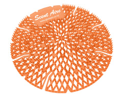 Scent Aire Signature Urinal Screen has a fragrance that releases over 30 days. It features a two-sided anti-splash texture, preventing splash back and cross contamination of urine to other areas outside the restroom. These screens are flexible to allow proper fit to any urinal contour. The translucent design allows total viewing of the drain to ensure it remains free flowing.