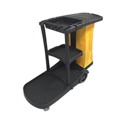 This Filta Utility Cart is ideal for storing and transporting all your cleaning products and equipment. It is lightweight and features wheels for easy mobility and a waste bag that can be used for laundry or rubbish, making it ideal for janitorial use or for use in hotels.