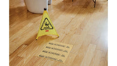 - Features the universal caution symbol and "Caution Wet Floor" in English and Spanish