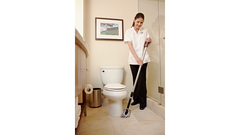 - Vertical polypropylene scrubber stripes remove stubborn spots and clean into tile grout lines