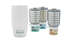 The Rubbermaid Commercial TCell is an odor control system that utilizes advanced fuel cell technology to deliver a precise, timed dose of high-quality fragrance for up to 60 days.