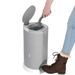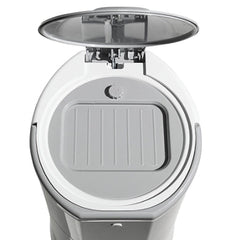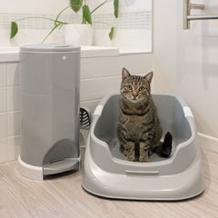 Safety features such as childproof locks on the lid and side door help prevent curious hands or paws from accessing the contents. With its compact 15–16L capacity and sleek grey design, the Litter Champ fits neatly into laundry rooms, bathrooms, or other small spaces.