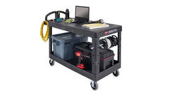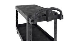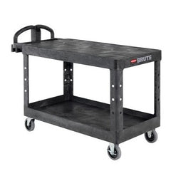 The BRUTE 2-Shelf Heavy Duty Ergonomic Utility Cart is a durable versatile cart that is ideal for securely transporting materials, supplies, and heavy loads up to 750 lb Constructed of high-density structural foam that will not dent, chip, or peel and designed with ergonomic handles for ideal hand placement. The cart features handle compartments for additional storage, molded fittings for rolled supplies, easy-access lipped bottom shelf, and a flat top shelf.