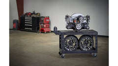 - Features two 5" fixed locking casters, and two swivel casters that keeps the cart in place when loading and unloading.