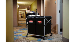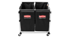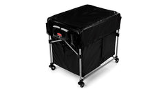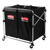 The Rubbermaid Commercial 1881781 Executive Series Multi-Stream, Collapsible X-Cart Basket, Two 4-Bushel bags, 220 lbs load capacity, Black.