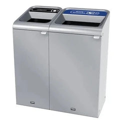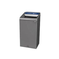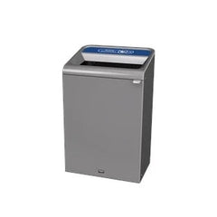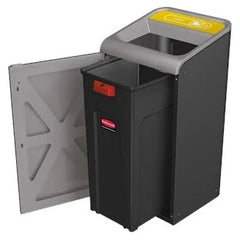 The Rubbermaid Commercial Configure Waste Receptacle, provides a stylish way to collect waste & recyclables in low-to-medium traffic areas. Constructed of corrosion-resistant heavy gauge steel with a damage-resistant powder coat finish and contoured edges for a modern appearance, the garbage can fits any commercial environment. This single stream recycle bin has a color-coded label and a large open top for collecting recyclables. Magnetic connections allow receptacles to attach to one another and stay arranged in the order that best fits the space – in a row or an island. An easy-access front door and handle reduces strain on staff, while internal door hinges protect walls from damage. Inside the trash bin, a rigid plastic liner features handles for more comfortable trash removal, integrated cinches so bags won't slip and venting channels that allow air to flow into the can making removal easier. This container ships fully assembled.