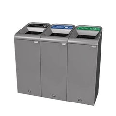 - Heavy-gauge steel recycler with a damage-resistant powder coat finish features contoured edges and magnetic connections that keep receptacles perfectly aligned to one another for a professional appearance