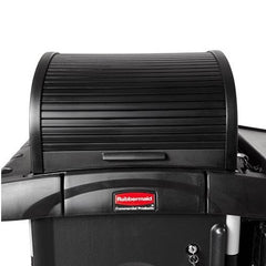 The Rubbermaid Commercial Products Executive Locking Hood for High-Capacity Janitorial Cleaning Carts secures and conceals supplies stored on the top of the cart while providing access to supplies on both sides of the cart.