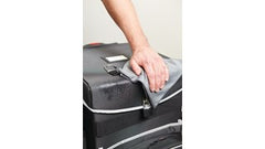 • SECURE STICK GOODS with heavy duty strap and large front pocket that will hold a Flexible Flat Mop (1867396 - Frame & 1863883 - Handle) or Sweeper (FG421588BLA).