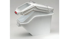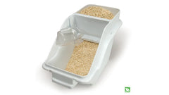 - The patent pending scoop hook system allows the scoop to be stored inside the bin and out of the product for quick access
