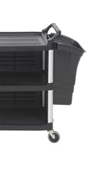 Rubbermaid Commercial Products Refuse Bin is a lipped bin designed to rest on the edge of a service cart. The bin provides a convenient storage area to stow away waste while on the move.