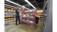 - Quickly replace totes and continue order-picking after dropping full totes on conveyor or for delivery