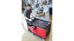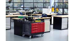 The TradeMaster Cart with 4 Drawers and Cabinet is a complete tool storage and mobile workbench system, with shelving and cabinet configurations to meet any storage needs. The mobile work station helps seamlessly and efficiently transport supplies to improve work productivity by eliminating the need for multiple trips going from site-to-site.