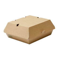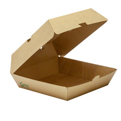 Eco-Friendly & Sustainable Our GREEN CHOICE Corrugated Square Clamshells are crafted from kraft cardboard, making them an eco-friendly choice for food packaging. Both home and commercially compostable, these boxes are also recyclable if not contaminated with food waste. Without a PLA lining, there is no moisture-resistant barrier, ensuring they break down more easily after disposal.