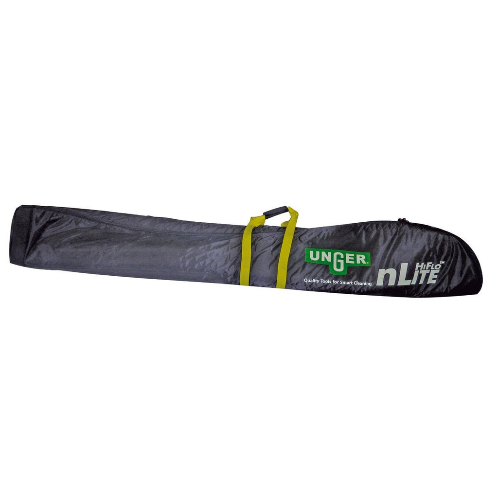 UNGER nLite Carry Bag – Transport your nLite water-fed poles and brushes with ease. Spacious enough for up to 5 poles, 2 brushes, 1 hose, adapters, and accessories, with two quick-access outer pockets. Comfortable handle and adjustable shoulder strap for professional convenience.