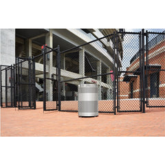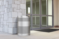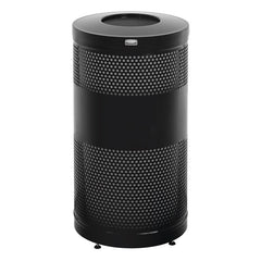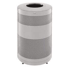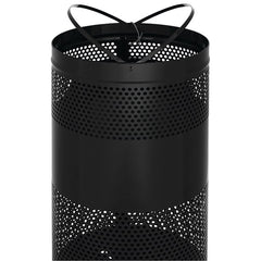 The heavy-duty Classics Decorative Waste Containers have a perforated steel design for a clean and modern appearance. It's made from heavy-gauge, fire-safe steel with the lid fastened to the receptacle with a cable, making waste collection faster and more convenient. This container is a smart choice for high traffic areas and can be used both outdoors and indoors. A leak-proof rigid plastic liner is included, as well as discreet retainer bands that hold bag liners securely in place and out of sight. Adjustable leg levelers create stability on uneven surfaces, giving you the ability to position containers in optimal areas despite the terrain. No assembly is required for this waste receptacle, making set-up fast and easy.